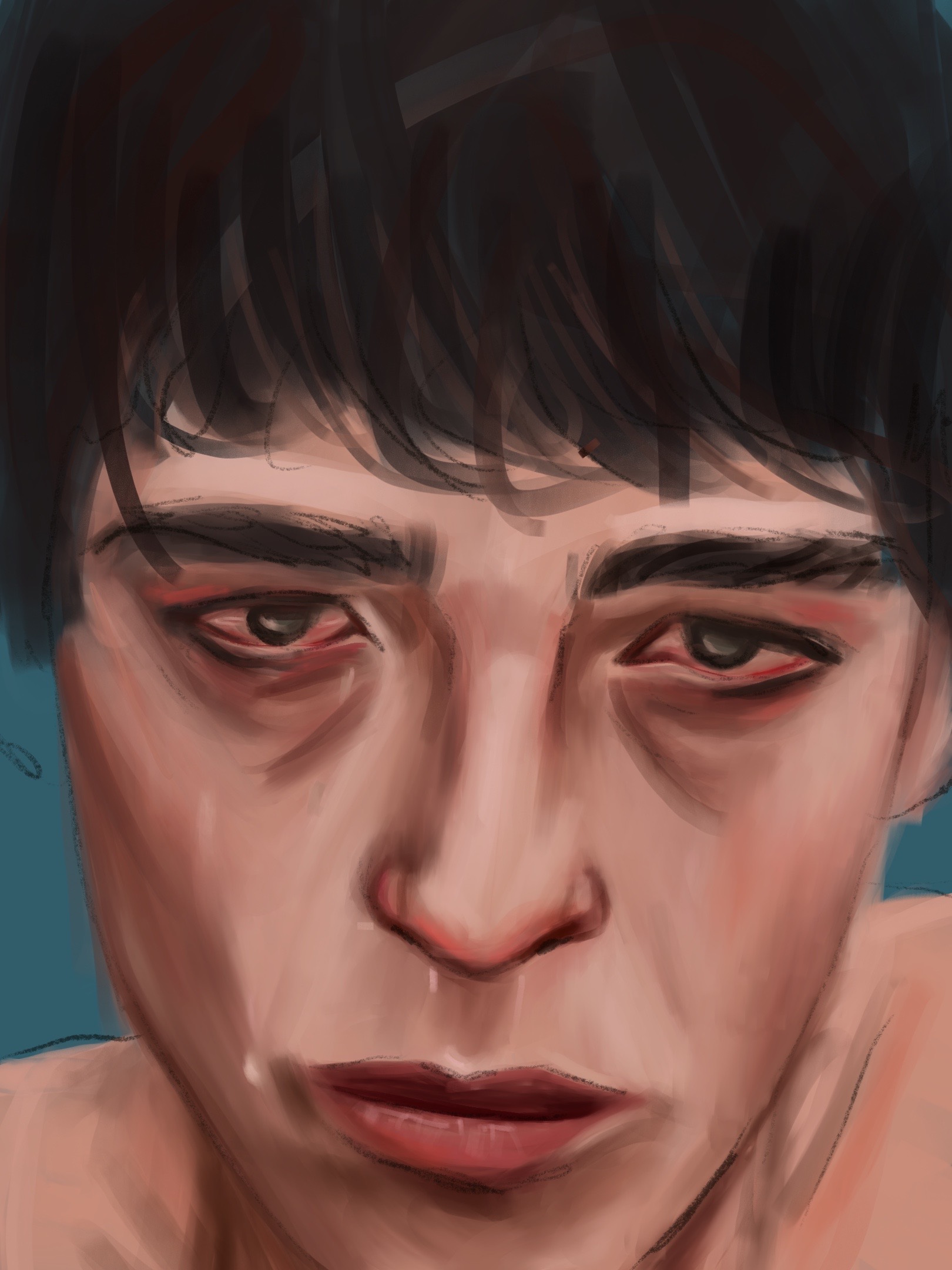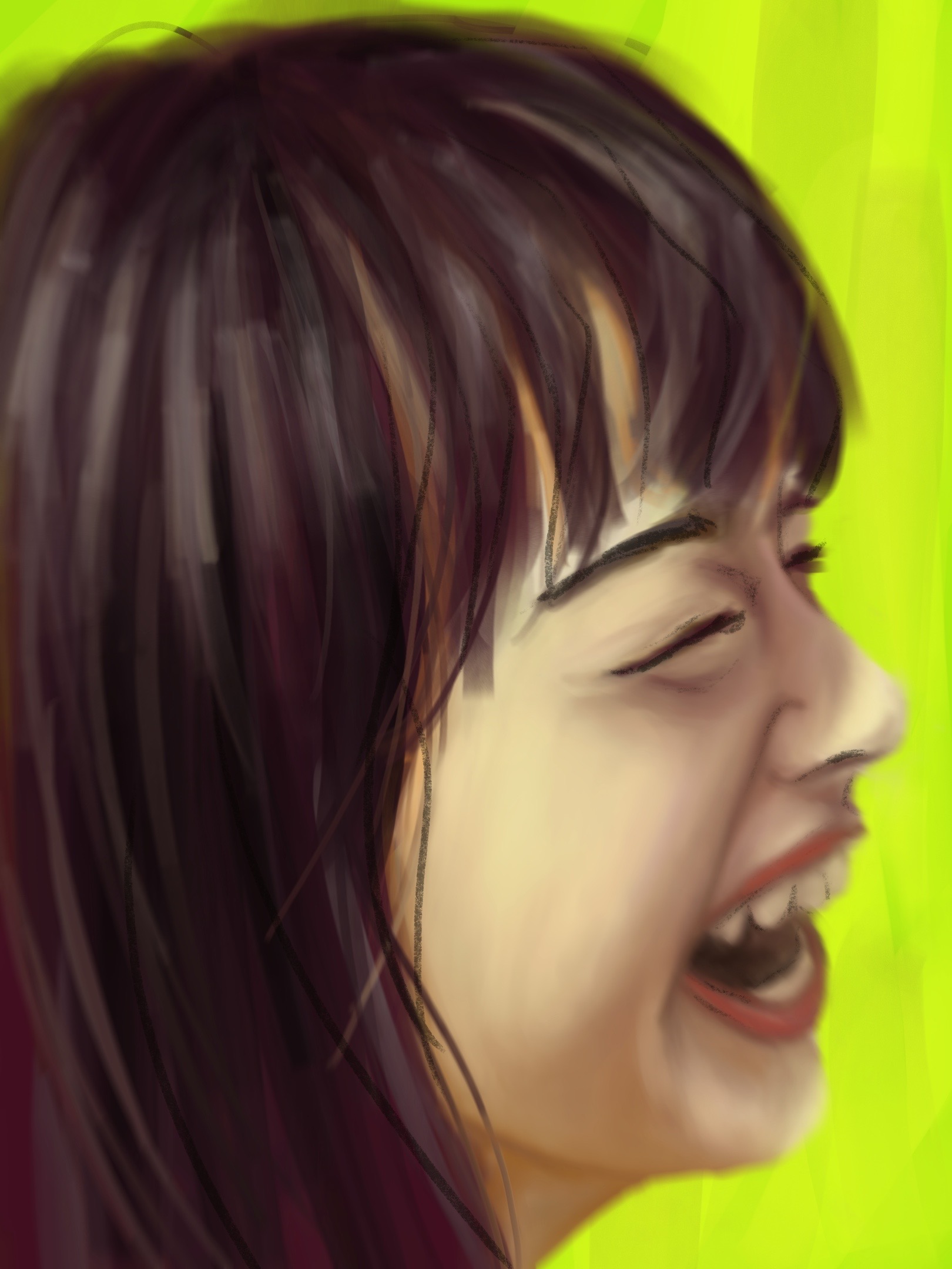 This series of portraits was created for my Digital Painting class. I wanted to explore the relation ship between color and emotion. I did research on the ‘7 universally recognized facial expressions’ and learned that these are; anger, contempt, joy, disgust, fear, sadness, and surprise (seen left to right below).